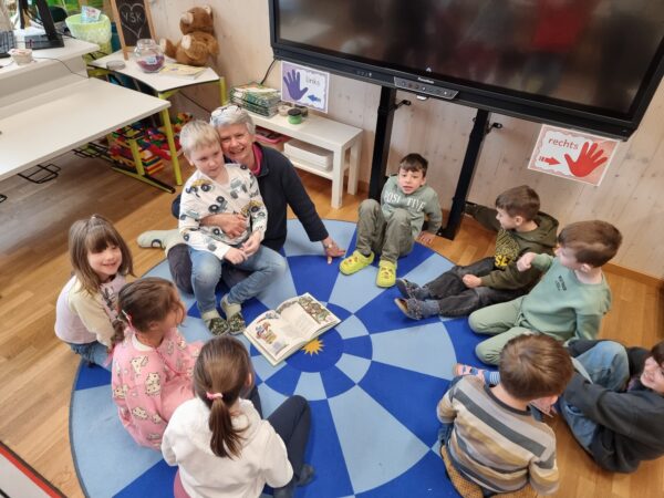 Gerne führen Sie Kinder der 4. Klassen durch die Schule – Start laufend in der Aula.